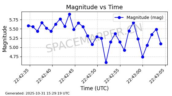 | STARLINK-31139 | 58688 | 58688 | 2023-12-29 同日期轨道 2023-211X 同批次轨道 | 在轨 | 94分钟 | 42.9984 | 467.587 | 475.903 | 0.0006070 | 2025-10-30 08:00:02 |  | |