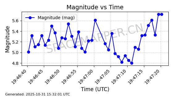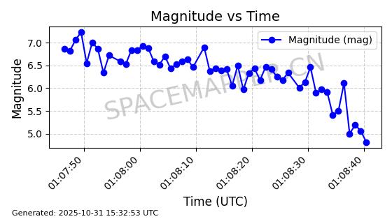 | STARLINK-31073 | 58773 | 58773 | 2024-01-14 同日期轨道 2024-011J 同批次轨道 | 在轨 | 94分钟 | 53.1598 | 474.4 | 476.14 | 0.0001268 | 2025-10-30 03:41:22 |  | |