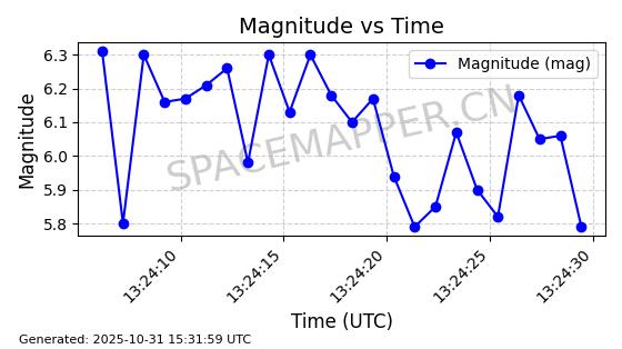 | STARLINK-31121 | 58685 | 58685 | 2023-12-29 同日期轨道 2023-211U 同批次轨道 | 在轨 | 94分钟 | 43.0025 | 482.154 | 484.004 | 0.0001348 | 2025-10-30 03:27:19 |  | |