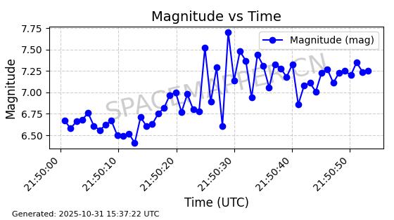 | STARLINK-3111 | 49418 | 49418 | 2021-11-13 同日期轨道 2021-104L 同批次轨道 | 在轨 | 95分钟 | 53.2162 | 538.87 | 540.642 | 0.0001280 | 2025-10-30 03:29:21 |  | |