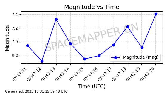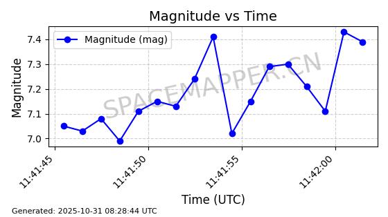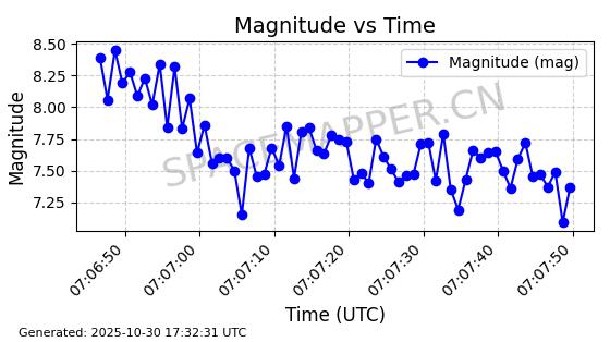 | STARLINK-31107 | 58684 | 58684 | 2023-12-29 同日期轨道 2023-211T 同批次轨道 | 在轨 | 94分钟 | 42.9976 | 482.398 | 483.726 | 0.0000967 | 2025-10-30 03:16:26 |  | |