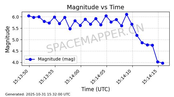 | STARLINK-31072 | 58599 | 58599 | 2023-12-19 同日期轨道 2023-200L 同批次轨道 | 已陨落 | 89分钟 | 42.9810 | 204.768 | 221.22 | 0.0012479 | 2025-05-22 12:06:57 |  | |
