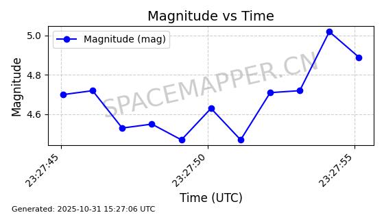 | STARLINK-31063 | 58547 | 58547 | 2023-12-08 同日期轨道 2023-192S 同批次轨道 | 在轨 | 94分钟 | 53.1604 | 474.313 | 476.191 | 0.0001369 | 2025-10-30 05:04:14 |  | |