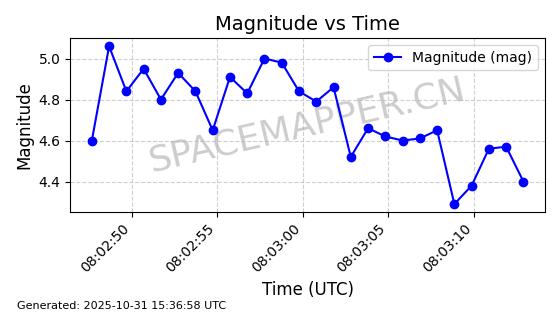 | STARLINK-31081 | 58632 | 58632 | 2023-12-23 同日期轨道 2023-203Q 同批次轨道 | 在轨 | 94分钟 | 43.0010 | 482.133 | 483.963 | 0.0001333 | 2025-10-30 03:07:50 |  | |