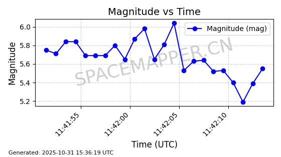 | STARLINK-31113 | 58668 | 58668 | 2023-12-29 同日期轨道 2023-211B 同批次轨道 | 在轨 | 94分钟 | 42.9987 | 482.242 | 483.908 | 0.0001214 | 2025-10-30 03:34:44 |  | |
