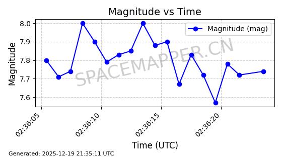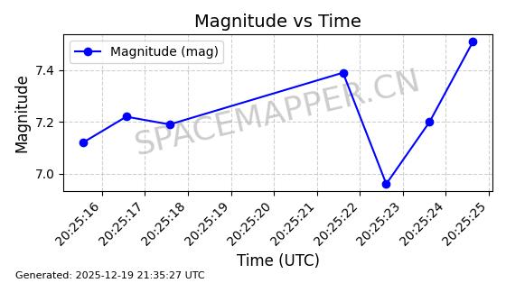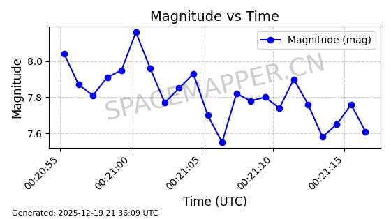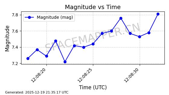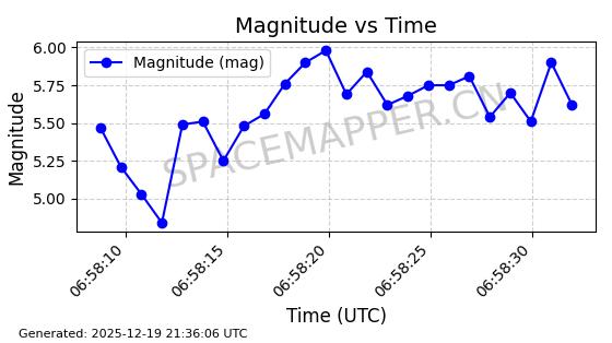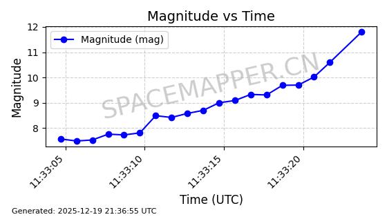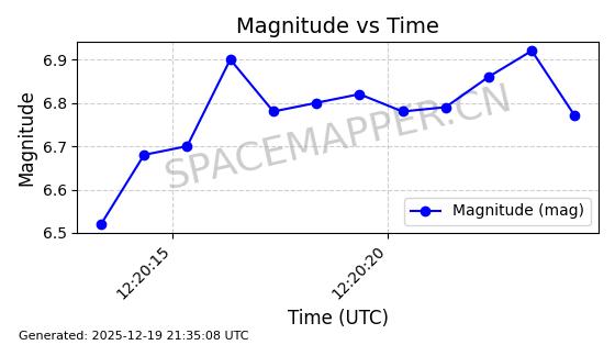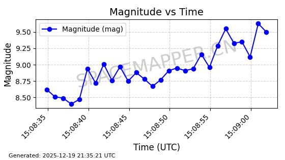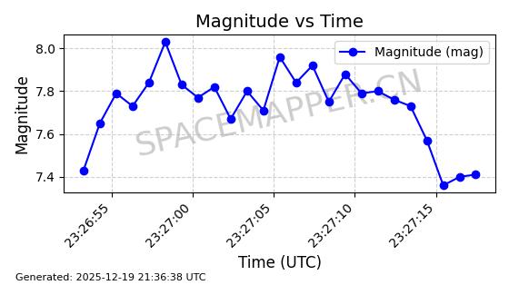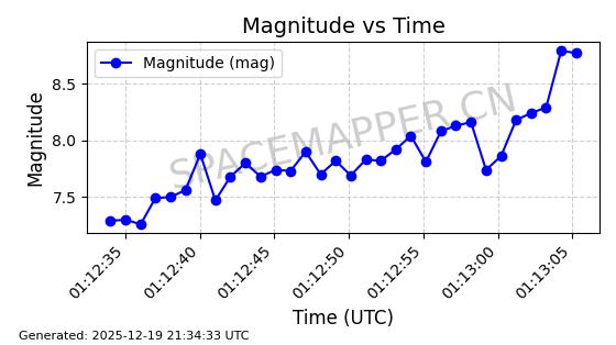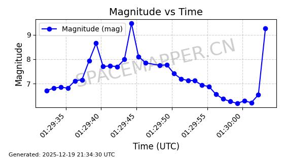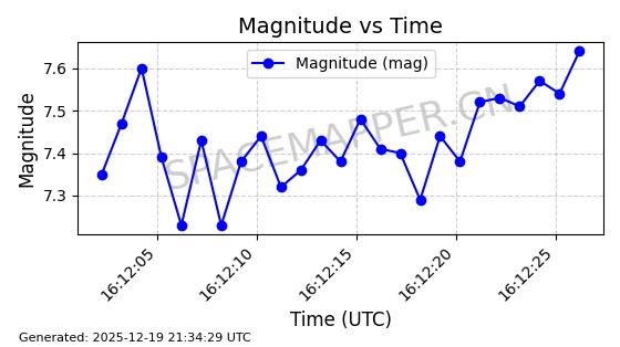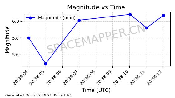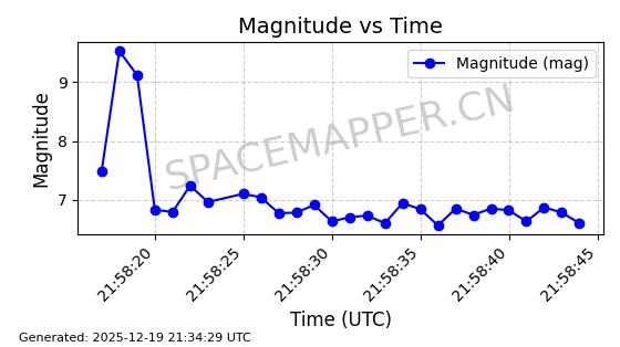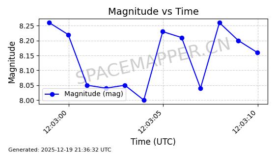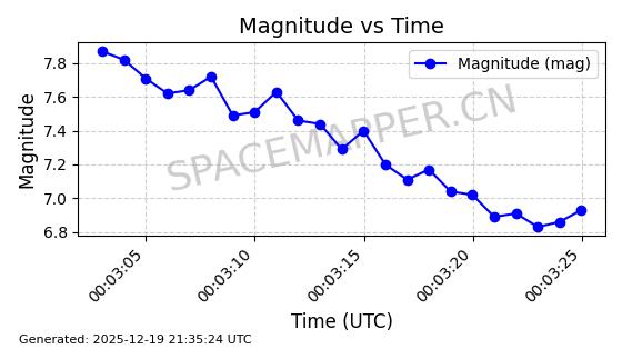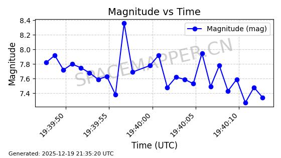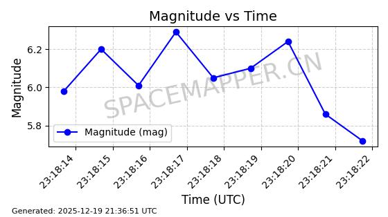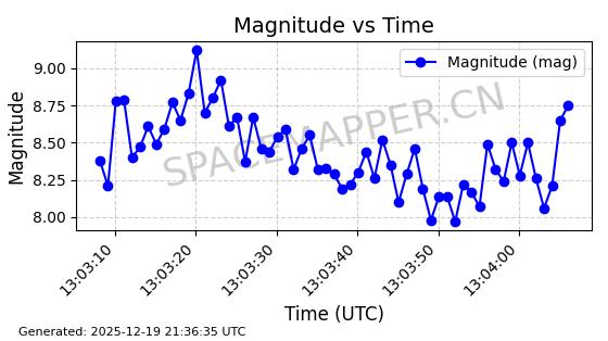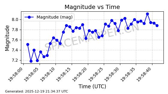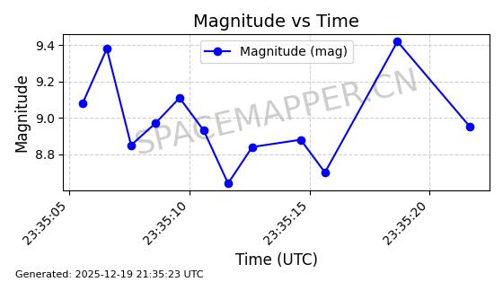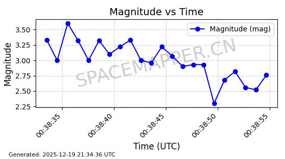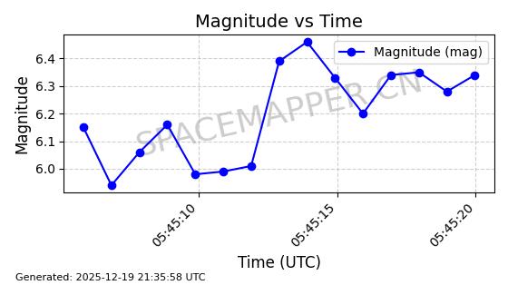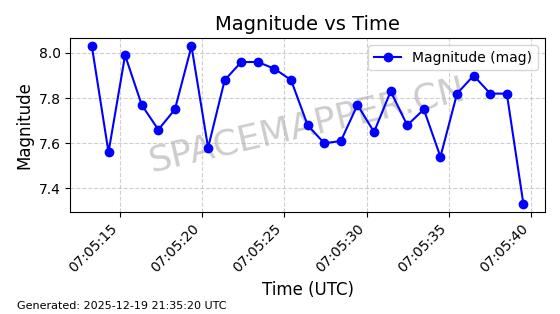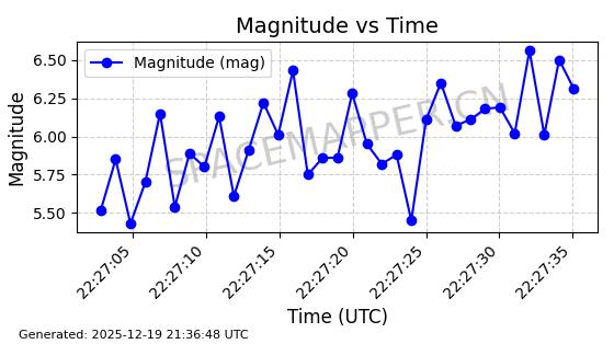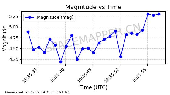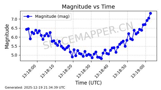 | STARLINK-31121 | 58685 | 58685 | 2023-12-29 同日期轨道 2023-211U 同批次轨道 | 在轨 | 94分钟 | 42.9989 | 482.461 | 483.669 | 0.0000880 | 2025-12-18 21:40:24 | ||