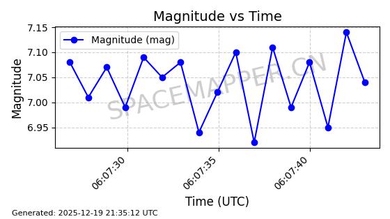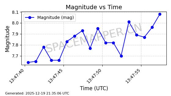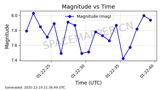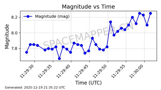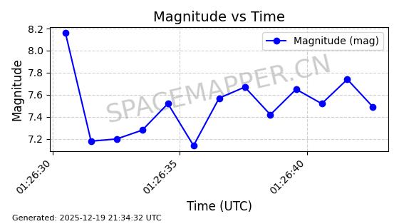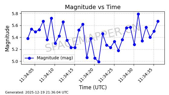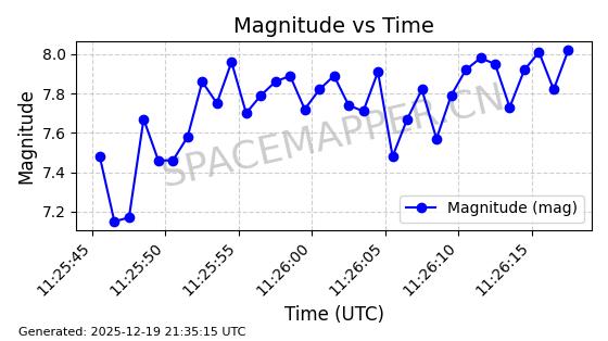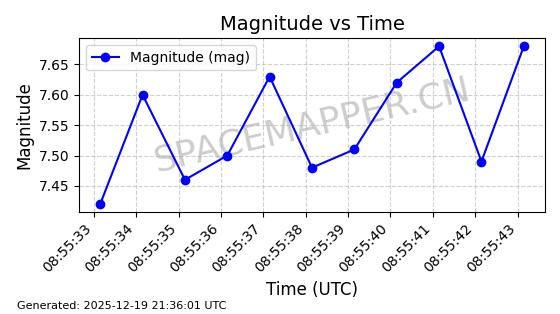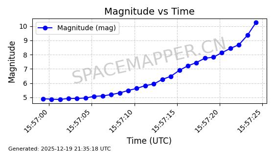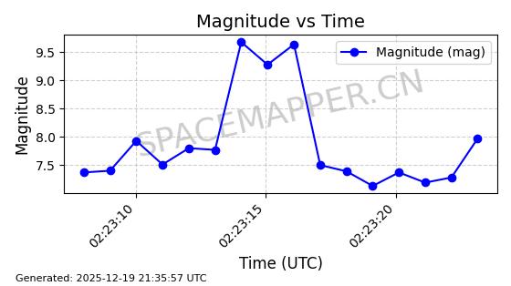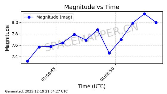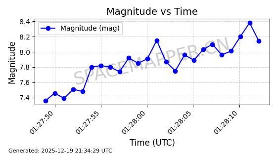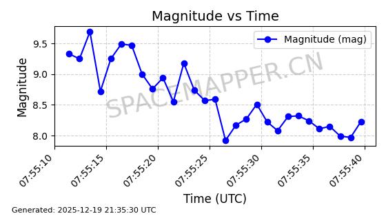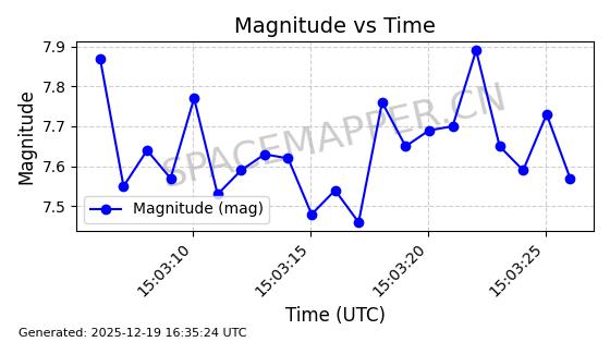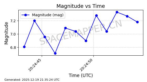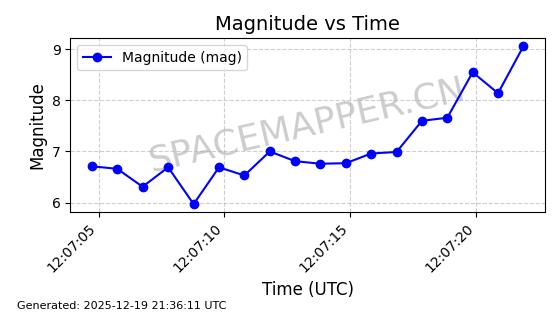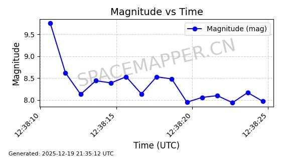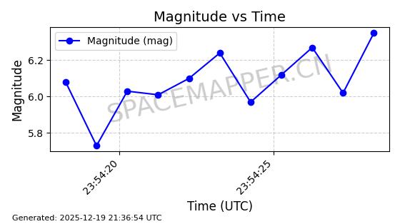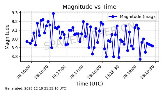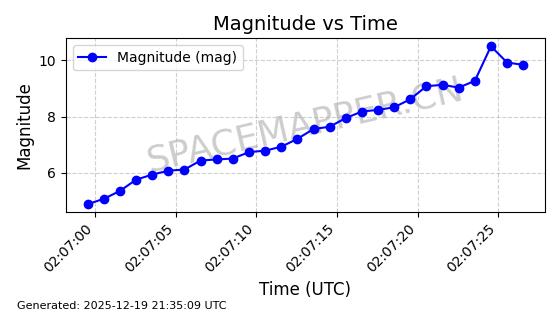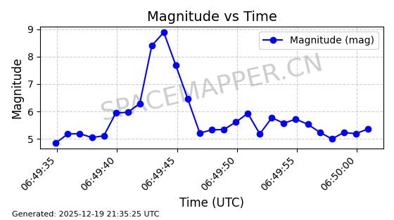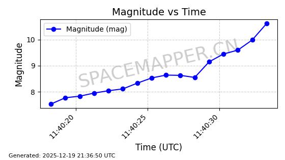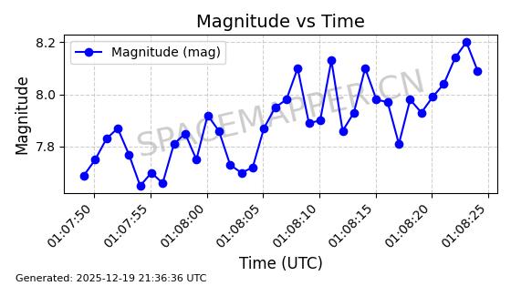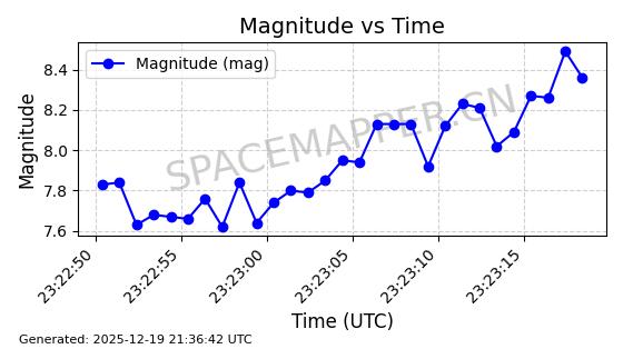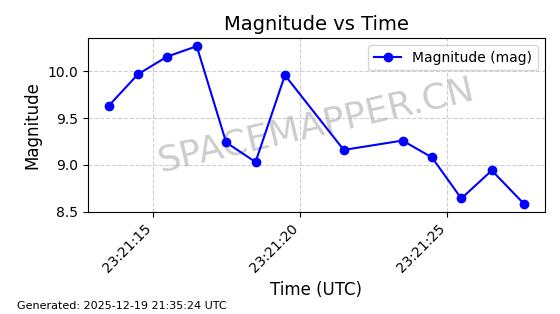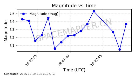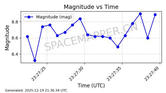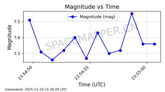 | STARLINK-31121 | 58685 | 58685 | 2023-12-29 同日期轨道 2023-211U 同批次轨道 | 在轨 | 94分钟 | 42.9989 | 482.461 | 483.669 | 0.0000880 | 2025-12-18 21:40:24 | ||