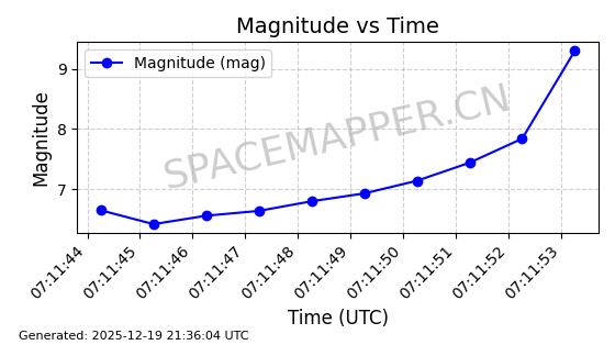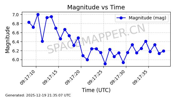 | STARLINK-31089 | 58610 | 58610 | 2023-12-19 同日期轨道 2023-200X 同批次轨道 | 在轨 | 96分钟 | 43.0039 | 558.297 | 559.867 | 0.0001131 | 2025-12-19 01:59:30 | ||