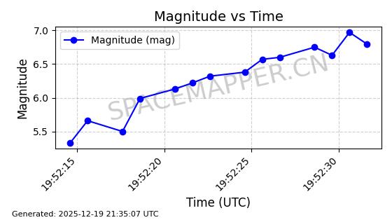 | STARLINK-31052 | 58600 | 58600 | 2023-12-19 同日期轨道 2023-200M 同批次轨道 | 在轨 | 96分钟 | 43.0026 | 558.191 | 559.973 | 0.0001284 | 2025-12-19 01:16:21 | ||