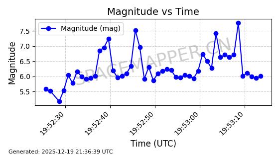 | STARLINK-3105 | 49440 | 49440 | 2021-11-13 同日期轨道 2021-104AJ 同批次轨道 | 在轨 | 95分钟 | 53.2162 | 538.577 | 540.897 | 0.0001676 | 2025-12-19 00:10:57 | ||