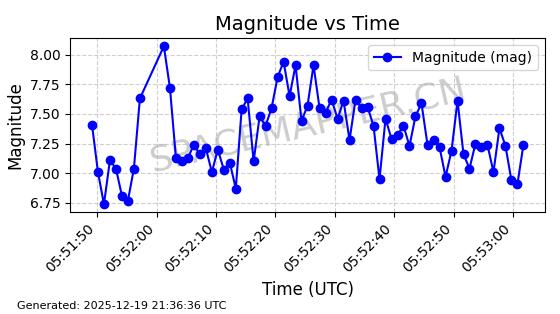 | STARLINK-31100 | 58714 | 58714 | 2024-01-03 同日期轨道 2024-002K 同批次轨道 | 在轨 | 94分钟 | 53.1606 | 474.423 | 476.085 | 0.0001212 | 2025-12-19 00:12:10 | ||