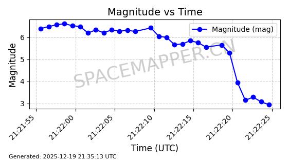 | STARLINK-31072 | 58599 | 58599 | 2023-12-19 同日期轨道 2023-200L 同批次轨道 | 已陨落 | 89分钟 | 42.9810 | 204.768 | 221.22 | 0.0012479 | 2025-05-22 12:06:57 | ||