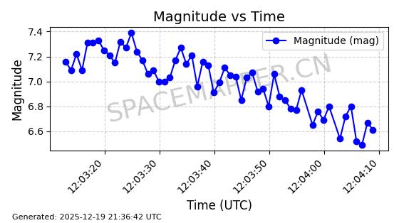 | STARLINK-31104 | 58672 | 58672 | 2023-12-29 同日期轨道 2023-211F 同批次轨道 | 在轨 | 94分钟 | 42.9984 | 480.368 | 483.06 | 0.0001962 | 2025-12-19 05:24:25 | ||