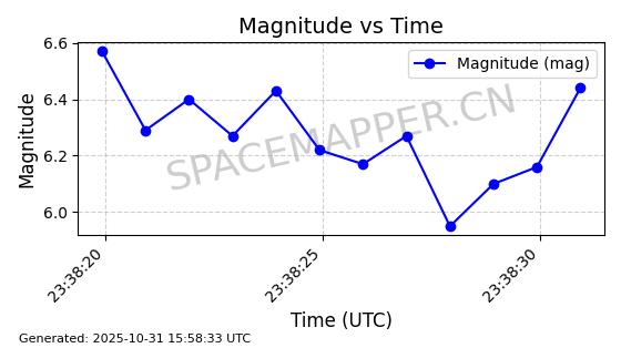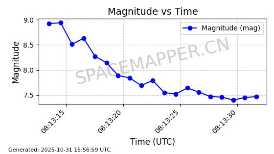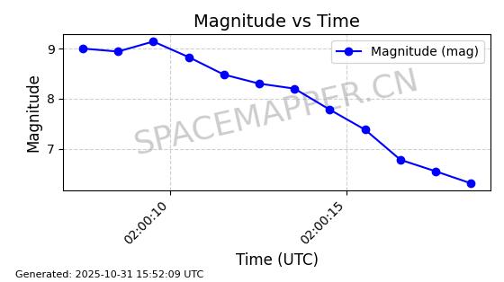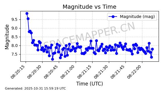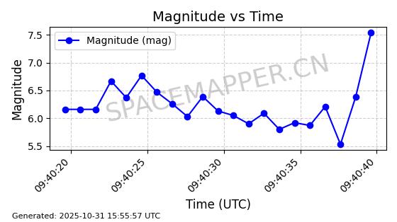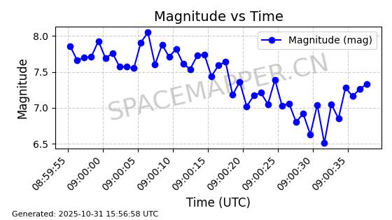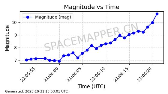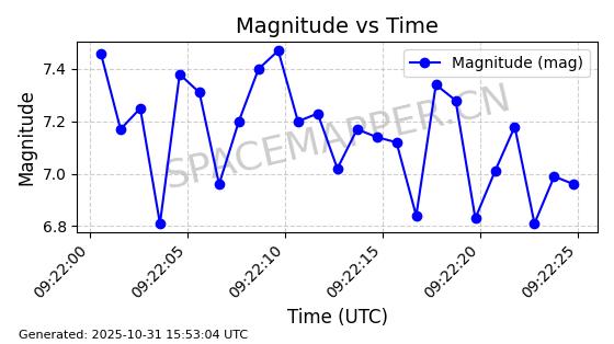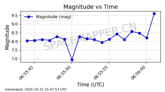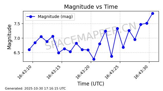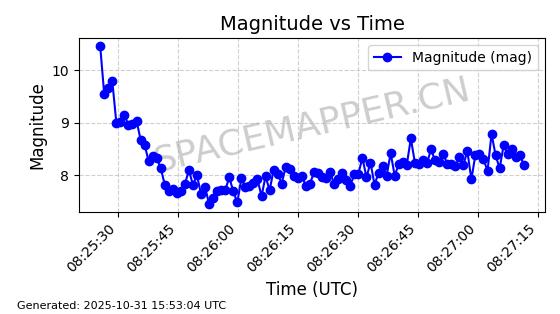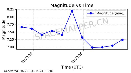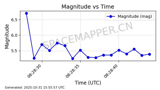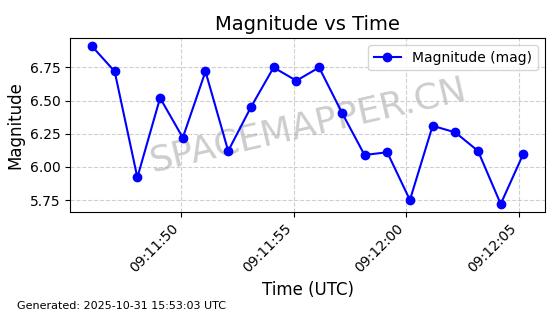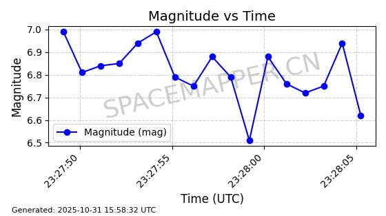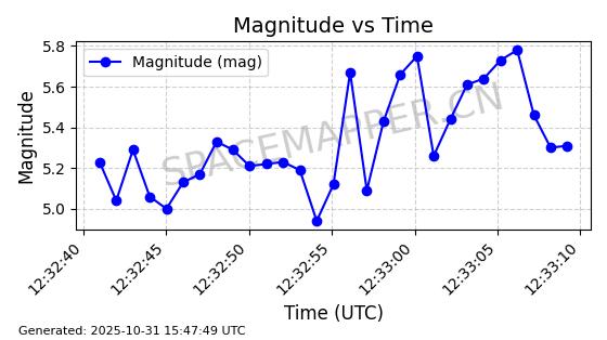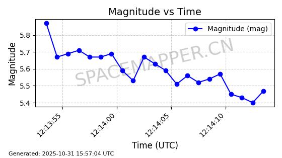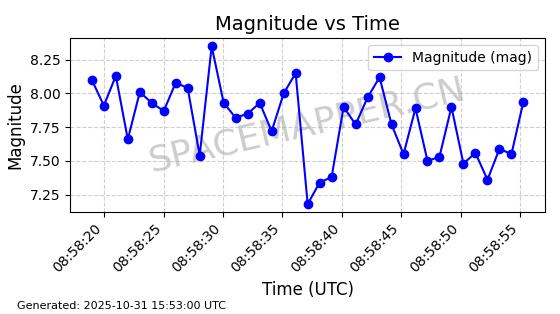 | STARLINK-31209 | 58883 | 58883 | 2024-01-29 同日期轨道 2024-020H 同批次轨道 | 在轨 | 94分钟 | 53.1597 | 474.482 | 476.048 | 0.0001142 | 2025-10-30 00:08:48 |  | |
