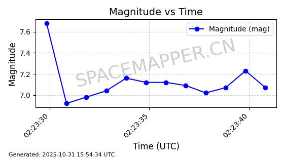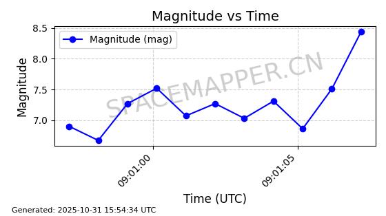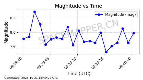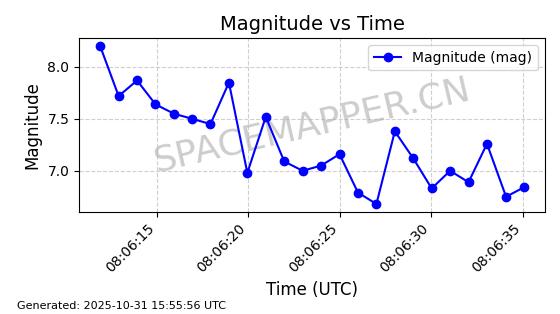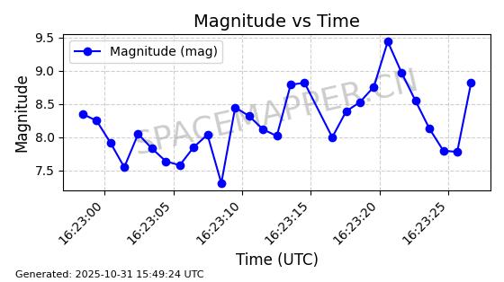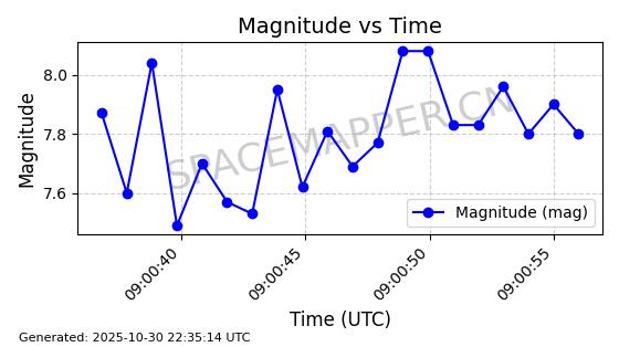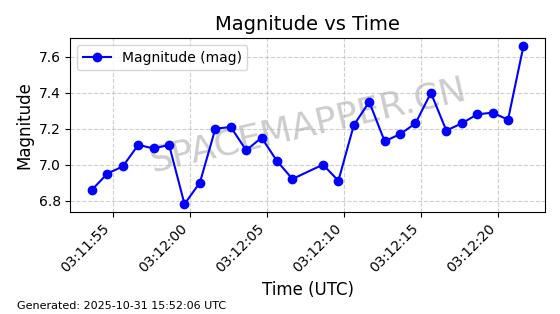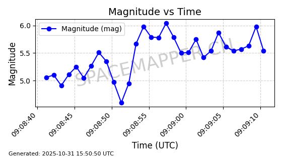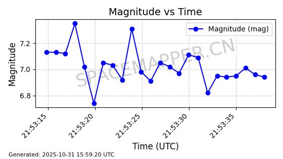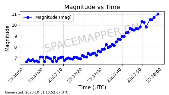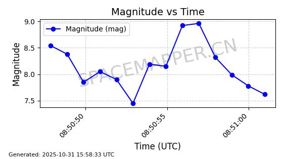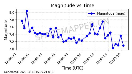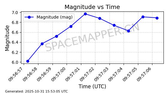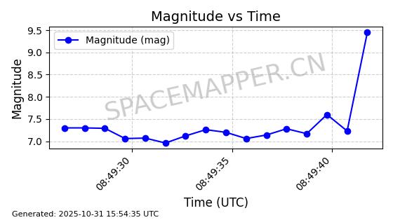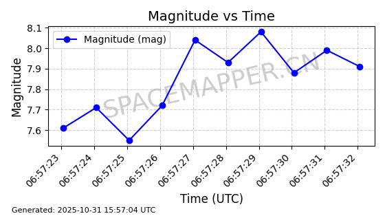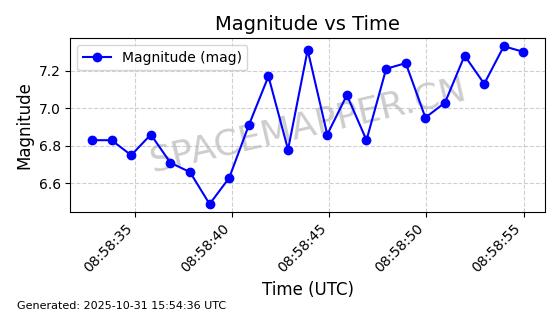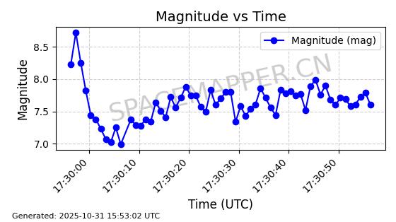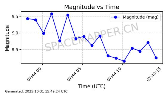 | STARLINK-31209 | 58883 | 58883 | 2024-01-29 同日期轨道 2024-020H 同批次轨道 | 在轨 | 94分钟 | 53.1597 | 474.482 | 476.048 | 0.0001142 | 2025-10-30 00:08:48 |  | |