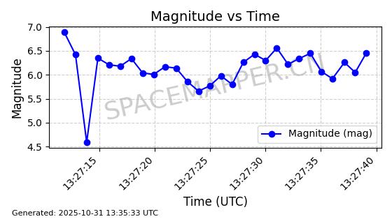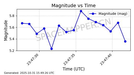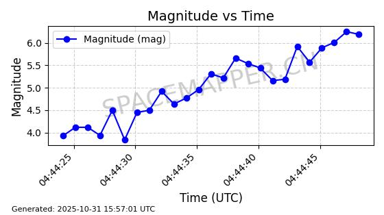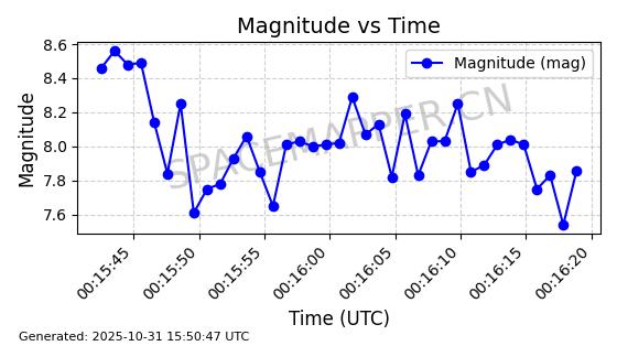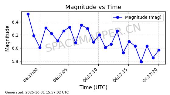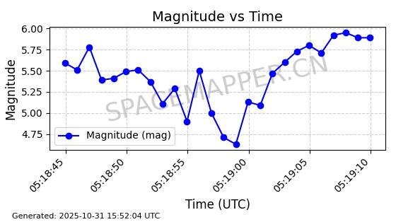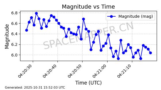 | STARLINK-31190 | 58897 | 58897 | 2024-01-29 同日期轨道 2024-020X 同批次轨道 | 在轨 | 94分钟 | 53.1606 | 474.284 | 476.25 | 0.0001433 | 2025-10-30 00:46:47 |  | |