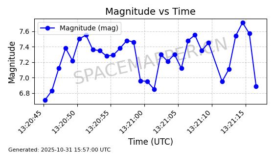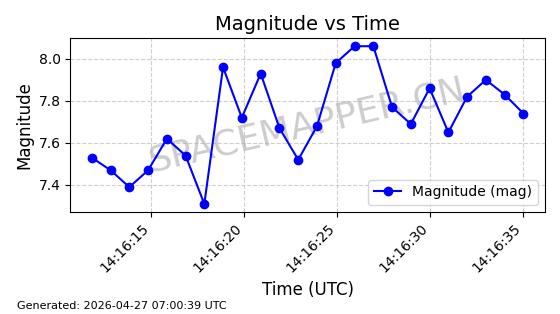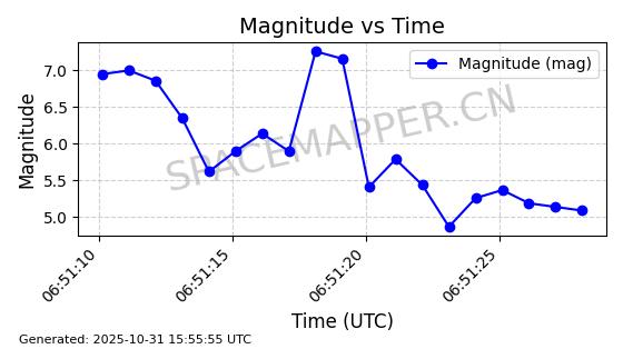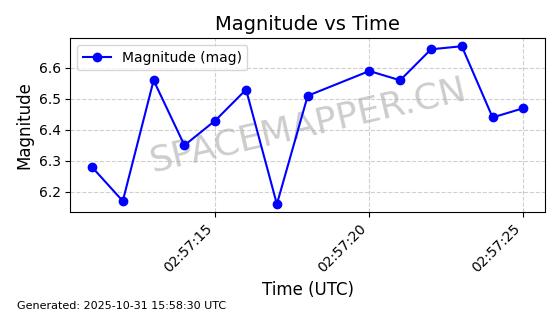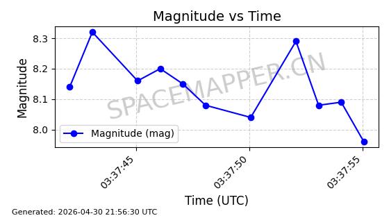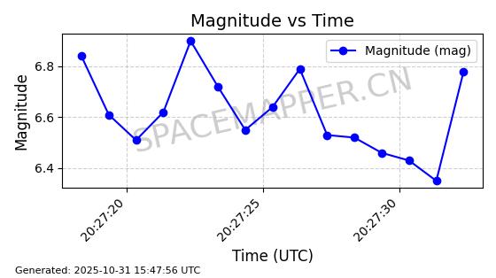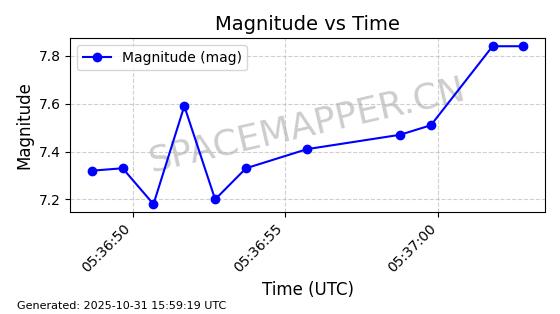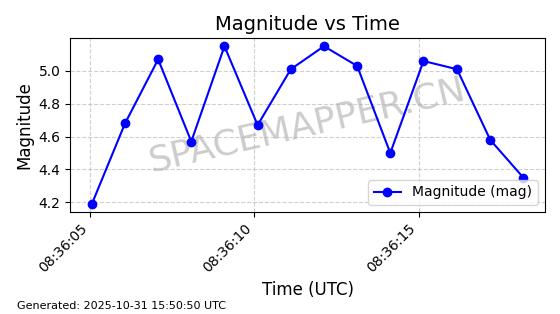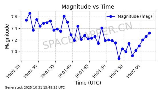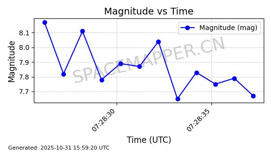 | 卫星名称 | AOE ID | NORAD ID | 发射日期 国际编号 | 在轨状态 | 轨道周期 | 轨道倾角 (度) | 近地点 (Km) | 远地点 (Km) | 偏心率 | 更新时间 (UTC) | 近期光变曲线 | 服务 |