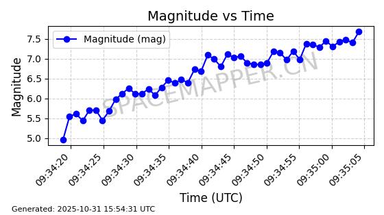 | STARLINK-31208 | 59037 | 59037 | 2024-02-25 同日期轨道 2024-038Q 同批次轨道 | 在轨 | 94分钟 | 42.9985 | 486.898 | 489.178 | 0.0001660 | 2025-10-30 00:18:52 |  | |