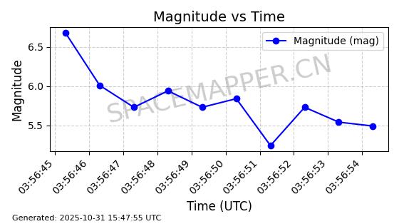 | STARLINK-3115 | 49447 | 49447 | 2021-11-13 同日期轨道 2021-104AR 同批次轨道 | 在轨 | 95分钟 | 53.2179 | 538.83 | 540.626 | 0.0001297 | 2025-10-30 03:04:11 |  | |