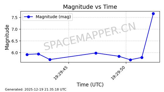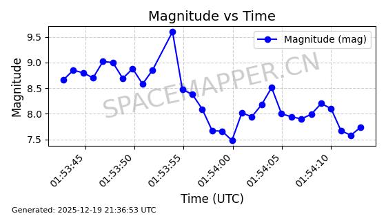 | STARLINK-31212 | 58875 | 58875 | 2024-01-29 同日期轨道 2024-019Y 同批次轨道 | 在轨 | 94分钟 | 43.0039 | 482.11 | 483.956 | 0.0001344 | 2025-12-19 05:53:31 | ||