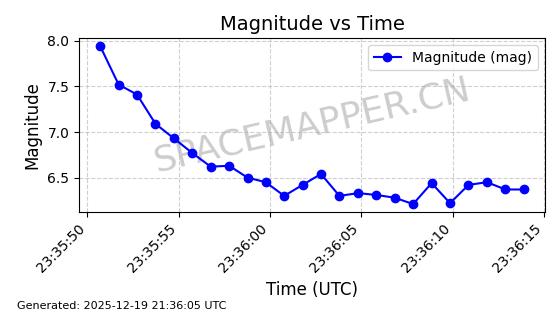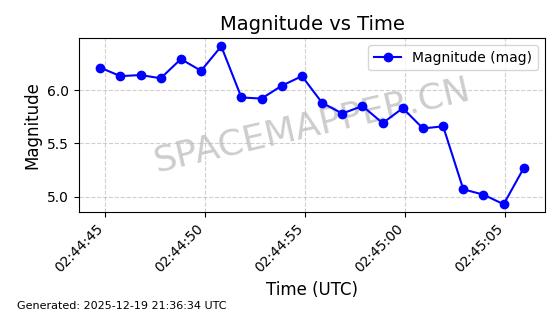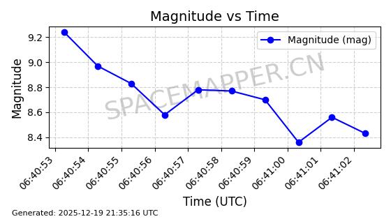 | STARLINK-31225 | 59040 | 59040 | 2024-02-25 同日期轨道 2024-038T 同批次轨道 | 在轨 | 94分钟 | 43.0026 | 482.119 | 483.999 | 0.0001370 | 2025-12-18 18:11:51 | ||