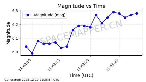 | STARLINK-31211 | 59031 | 59031 | 2024-02-25 同日期轨道 2024-038J 同批次轨道 | 在轨 | 94分钟 | 43.0025 | 482.302 | 483.818 | 0.0001104 | 2025-12-18 16:35:09 | ||