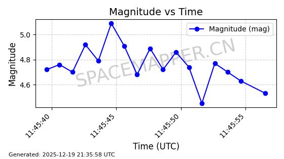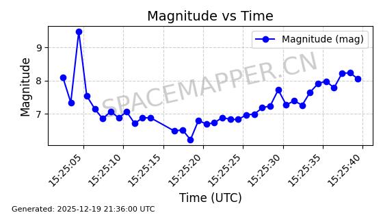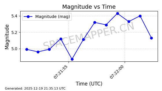 | STARLINK-3121 | 49428 | 49428 | 2021-11-13 同日期轨道 2021-104W 同批次轨道 | 在轨 | 95分钟 | 53.2174 | 538.705 | 540.813 | 0.0001523 | 2025-12-18 21:45:12 | ||