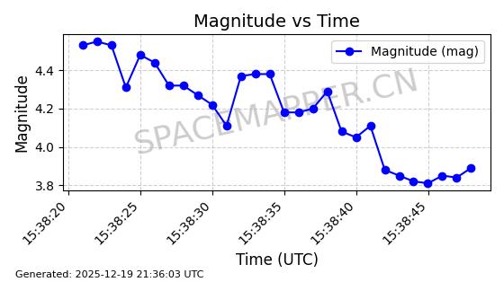 | STARLINK-31188 | 58804 | 58804 | 2024-01-15 同日期轨道 2024-012T 同批次轨道 | 在轨 | 94分钟 | 43.0029 | 481.511 | 484.563 | 0.0002224 | 2025-12-19 03:02:09 | ||