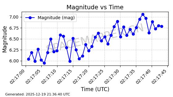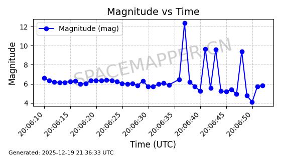 | STARLINK-31210 | 59033 | 59033 | 2024-02-25 同日期轨道 2024-038L 同批次轨道 | 在轨 | 94分钟 | 43.0028 | 482.15 | 483.938 | 0.0001302 | 2025-12-18 09:22:05 | ||