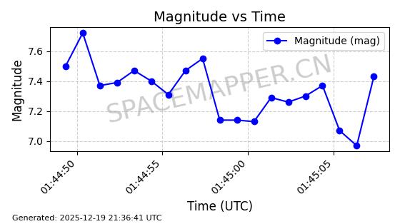 | STARLINK-31167 | 58744 | 58744 | 2024-01-07 同日期轨道 2024-005S 同批次轨道 | 在轨 | 94分钟 | 43.0015 | 482.439 | 483.791 | 0.0000985 | 2025-12-19 04:47:05 | ||