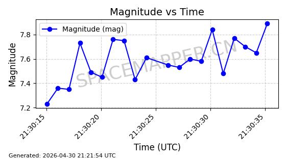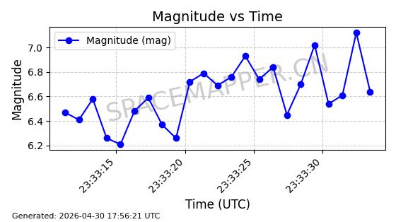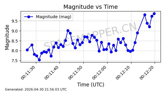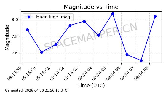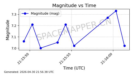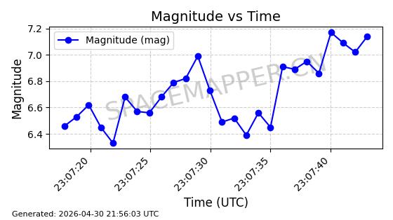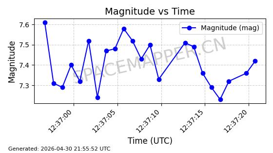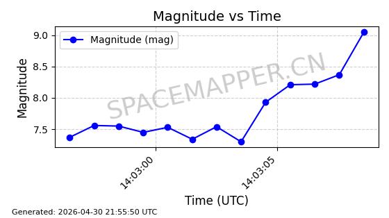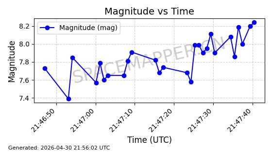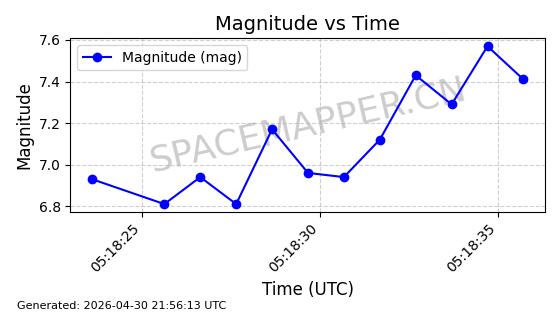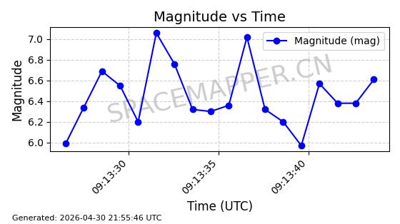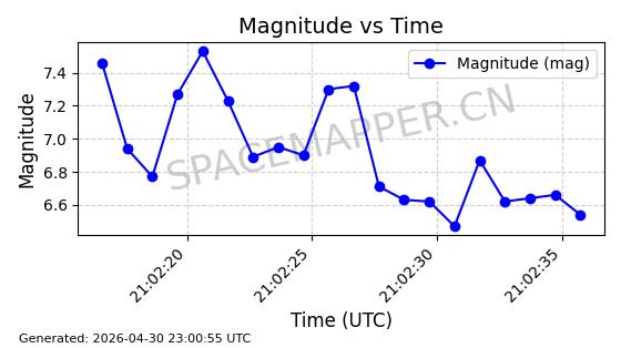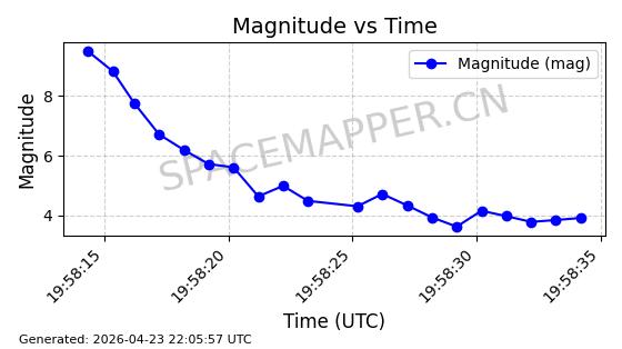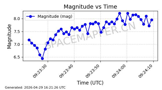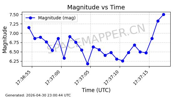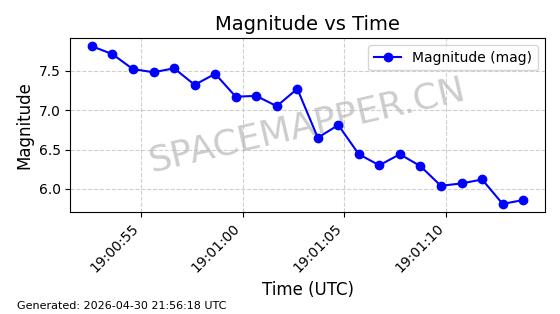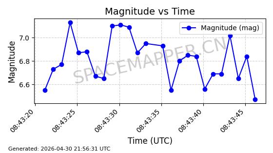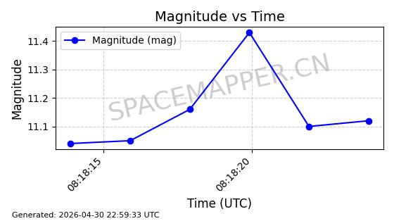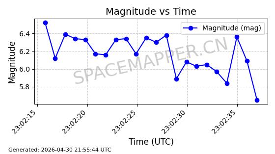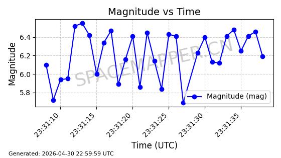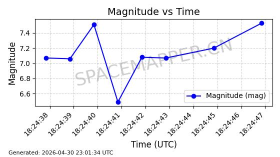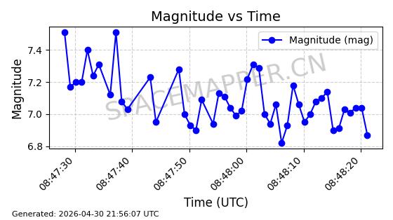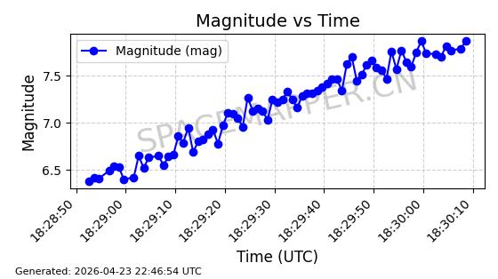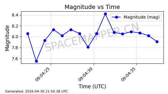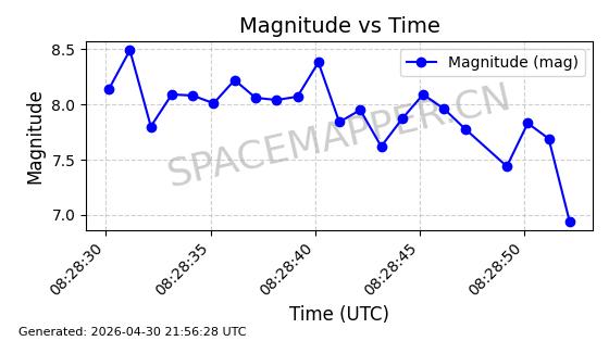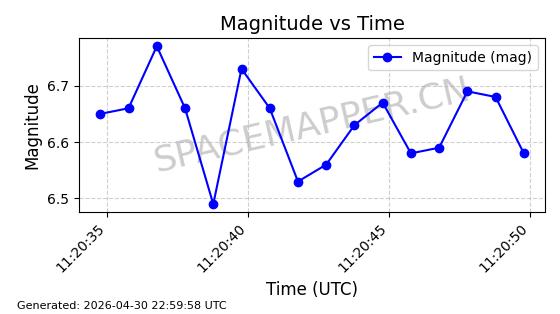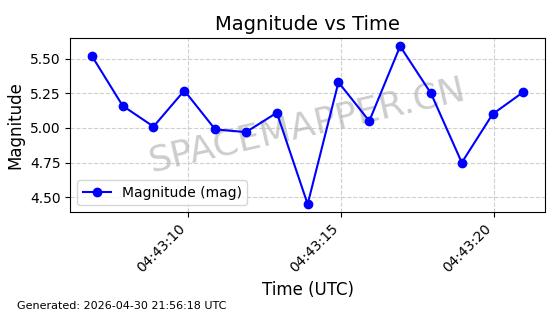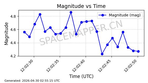 | STARLINK-31218 | 58895 | 58895 | 2024-01-29 同日期轨道 2024-020V 同批次轨道 | 在轨 | 94分钟 | 53.1590 | 469.791 | 471.753 | 0.0001431 | 2026-04-30 04:00:01 | ||