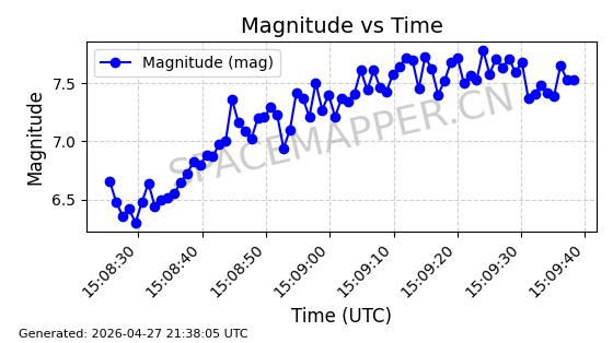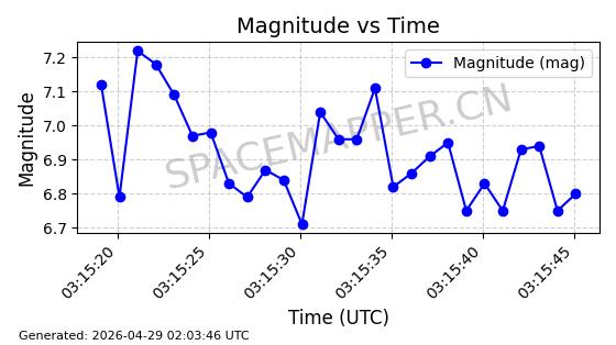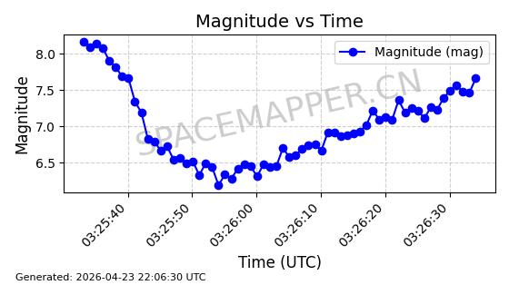 | STARLINK-31207 | 59035 | 59035 | 2024-02-25 同日期轨道 2024-038N 同批次轨道 | 在轨 | 94分钟 | 43.0036 | 482.212 | 483.914 | 0.0001239 | 2026-04-29 22:06:09 | ||