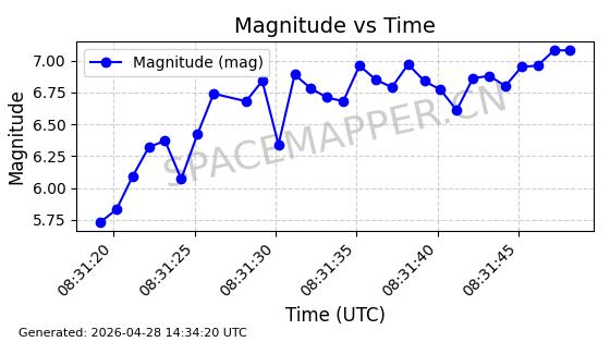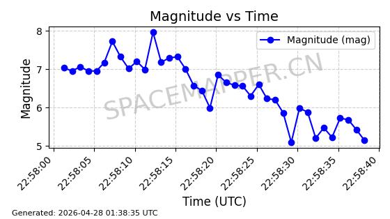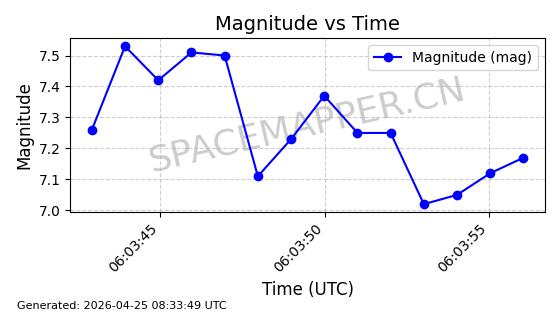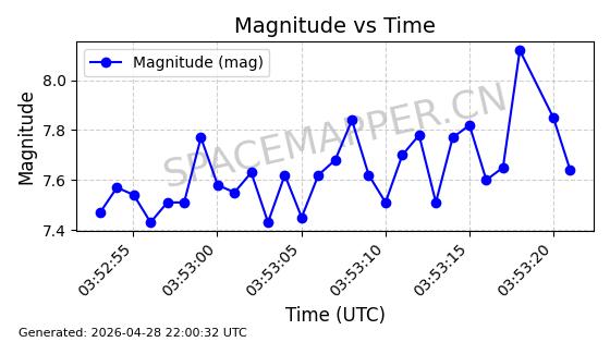 | STARLINK-31208 | 59037 | 59037 | 2024-02-25 同日期轨道 2024-038Q 同批次轨道 | 在轨 | 94分钟 | 43.0033 | 482.255 | 483.917 | 0.0001210 | 2026-04-29 10:31:26 | ||