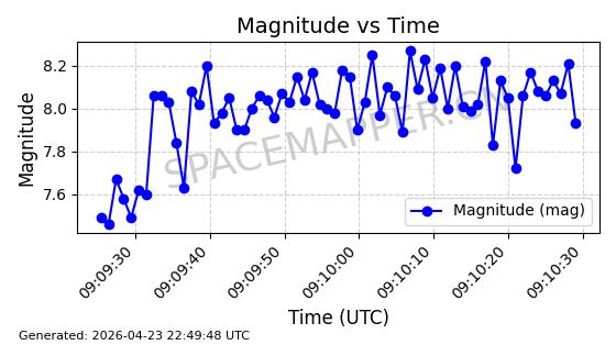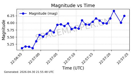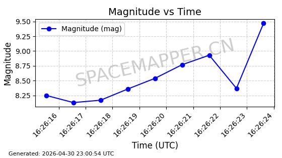 | STARLINK-31209 | 58883 | 58883 | 2024-01-29 同日期轨道 2024-020H 同批次轨道 | 在轨 | 94分钟 | 53.1613 | 474.298 | 476.18 | 0.0001373 | 2026-04-30 04:03:22 | ||