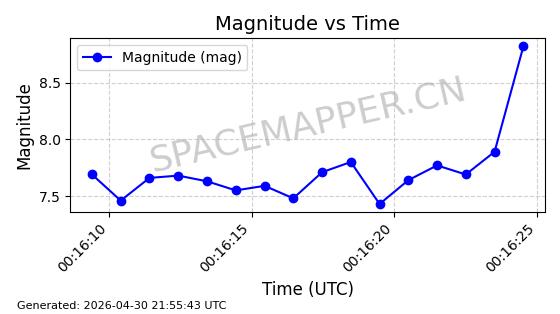| STARLINK-31192 | 58794 | 58794 | 2024-01-15 同日期轨道 2024-012H 同批次轨道 | 在轨 | 94分钟 | 43.0015 | 482.488 | 483.638 | 0.0000837 | 2026-04-30 00:39:50 | ||