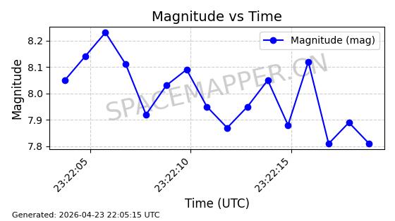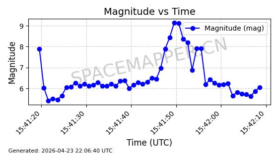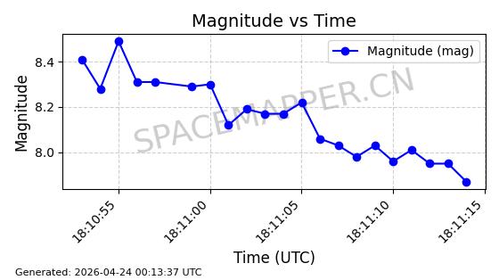 | STARLINK-31163 | 58807 | 58807 | 2024-01-15 同日期轨道 2024-012W 同批次轨道 | 在轨 | 94分钟 | 43.0034 | 482.321 | 483.821 | 0.0001092 | 2026-04-30 00:56:16 | ||