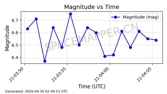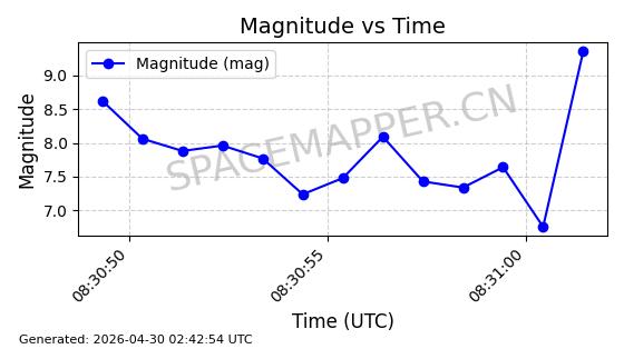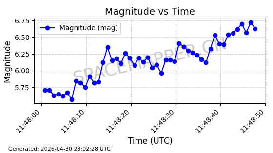| STARLINK-31151 | 58742 | 58742 | 2024-01-07 同日期轨道 2024-005Q 同批次轨道 | 在轨 | 94分钟 | 43.0054 | 481.74 | 484.404 | 0.0001940 | 2026-04-29 20:59:27 | ||