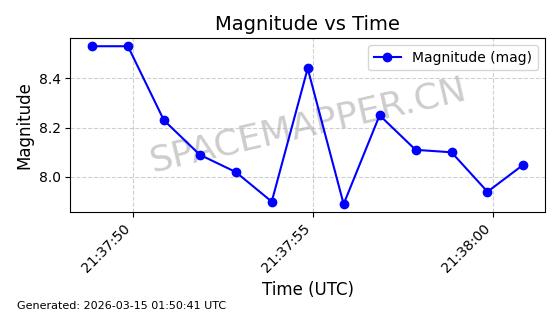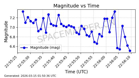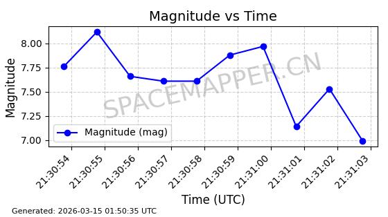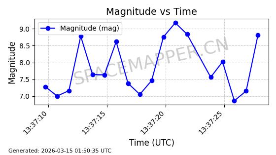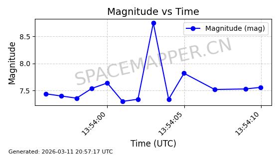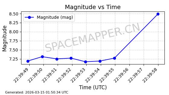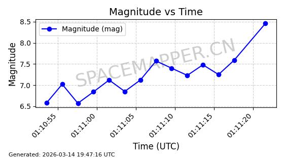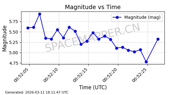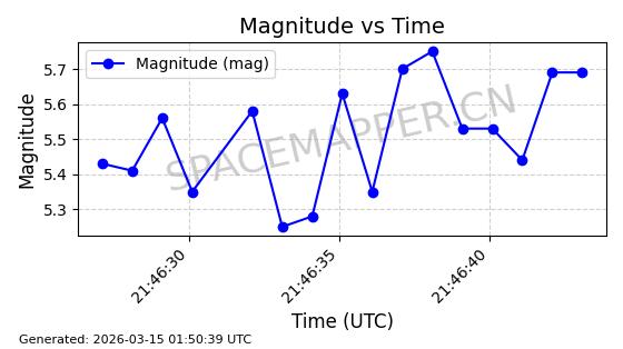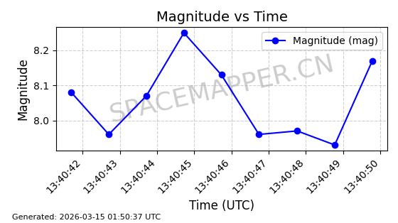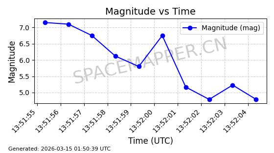 | STARLINK-4218 | 53025 | 53025 | 2022-07-07 同日期轨道 2022-076AR 同批次轨道 | 在轨 | 95分钟 | 53.2161 | 538.92 | 540.626 | 0.0001233 | 2026-03-13 07:12:35 | ||
