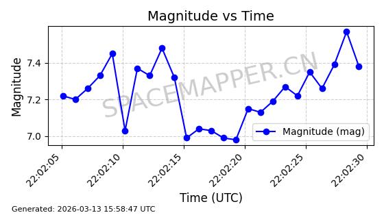 | STARLINK-4352 | 53047 | 53047 | 2022-07-11 同日期轨道 2022-077E 同批次轨道 | 在轨 | 96分钟 | 97.6023 | 561.99 | 564.036 | 0.0001473 | 2026-03-13 22:55:20 | ||