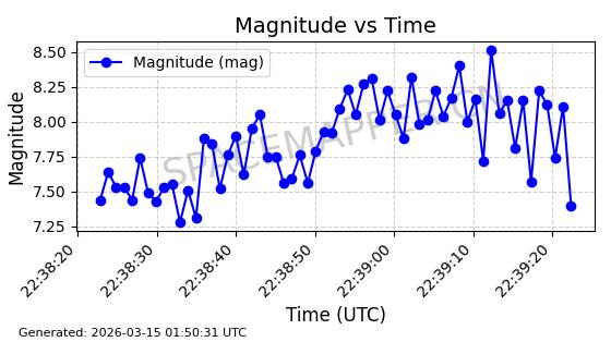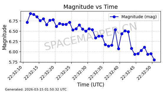 | STARLINK-4160 | 53030 | 53030 | 2022-07-07 同日期轨道 2022-076AW 同批次轨道 | 在轨 | 95分钟 | 53.2162 | 538.763 | 540.719 | 0.0001413 | 2026-03-13 09:09:11 | ||