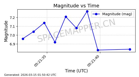 | STARLINK-4283 | 53016 | 53016 | 2022-07-07 同日期轨道 2022-076AG 同批次轨道 | 在轨 | 95分钟 | 53.2170 | 538.921 | 540.569 | 0.0001190 | 2026-03-13 09:46:14 | ||