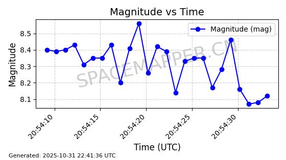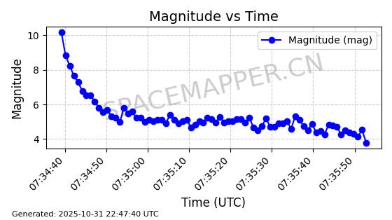 | STARLINK-31337 | 58934 | 58934 | 2024-02-10 同日期轨道 2024-027D 同批次轨道 | 在轨 | 94分钟 | 53.1602 | 474.338 | 476.164 | 0.0001332 | 2025-10-30 23:44:49 |  | |