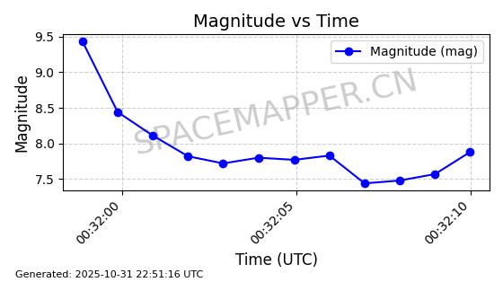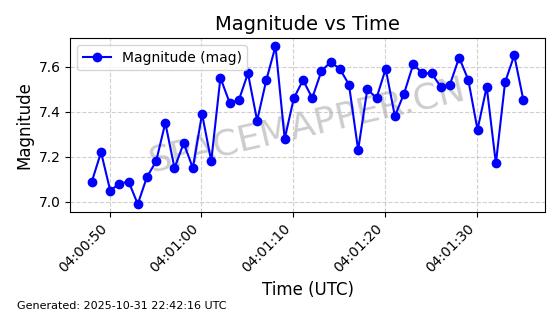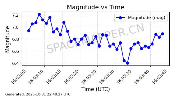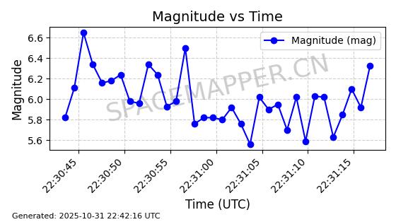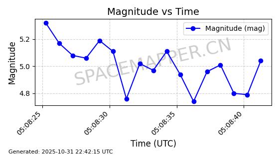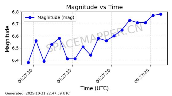| STARLINK-31402 | 59320 | 59320 | 2024-03-25 同日期轨道 2024-057A 同批次轨道 | 在轨 | 94分钟 | 42.9999 | 482.053 | 484.071 | 0.0001470 | 2025-10-31 01:12:02 |  | |