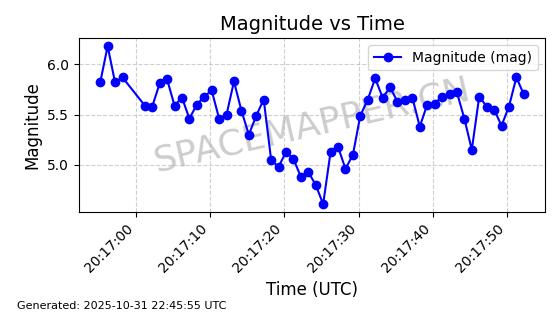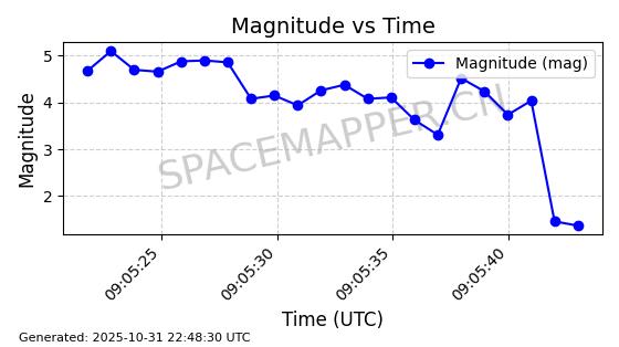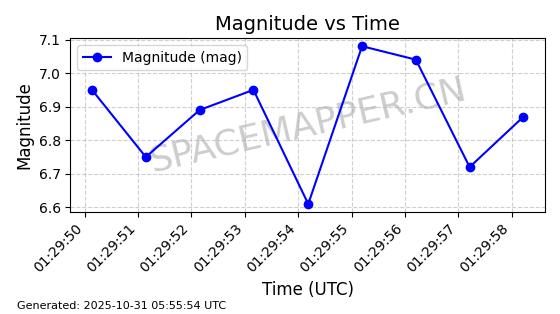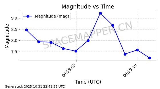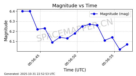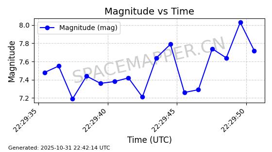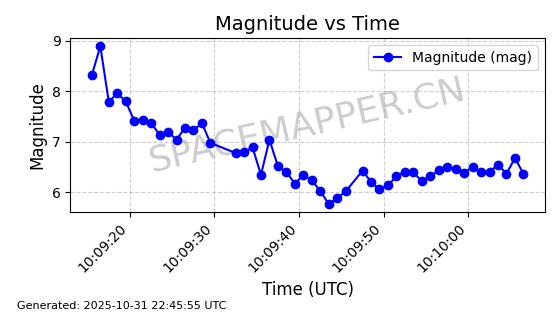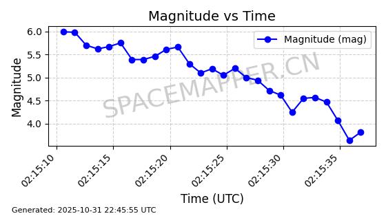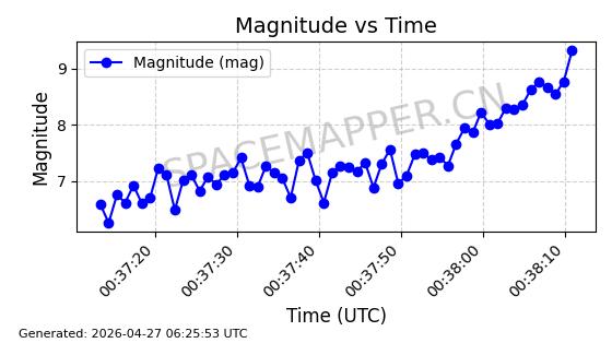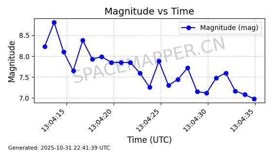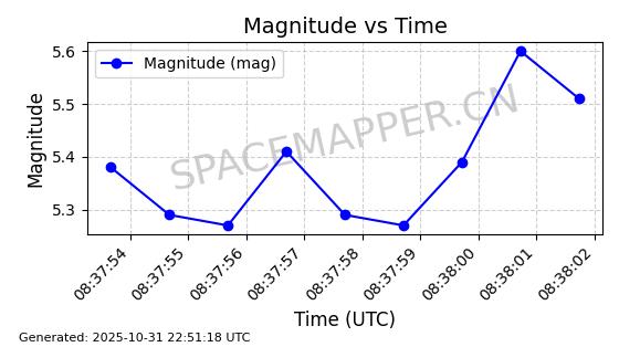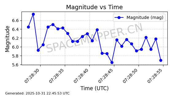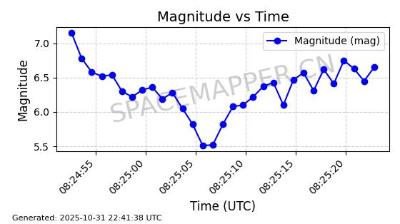 | 卫星名称 | AOE ID | NORAD ID | 发射日期 国际编号 | 在轨状态 | 轨道周期 | 轨道倾角 (度) | 近地点 (Km) | 远地点 (Km) | 偏心率 | 更新时间 (UTC) | 近期光变曲线 | 服务 |