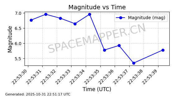 | STARLINK-3141 | 49459 | 49459 | 2021-11-13 同日期轨道 2021-104BD 同批次轨道 | 在轨 | 95分钟 | 53.2170 | 538.841 | 540.619 | 0.0001285 | 2025-10-30 18:10:20 |  | |