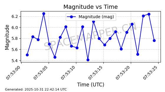 | STARLINK-31379 | 58984 | 58984 | 2024-02-15 同日期轨道 2024-031V 同批次轨道 | 在轨 | 94分钟 | 53.1597 | 474.396 | 476.092 | 0.0001237 | 2025-10-30 22:31:17 |  | |