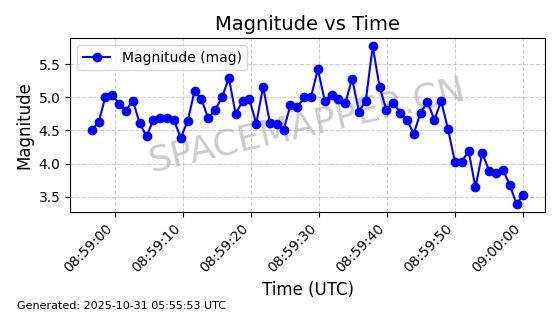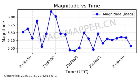 | STARLINK-31335 | 58969 | 58969 | 2024-02-15 同日期轨道 2024-031E 同批次轨道 | 在轨 | 94分钟 | 53.1593 | 474.325 | 476.129 | 0.0001315 | 2025-10-30 22:09:05 |  | |