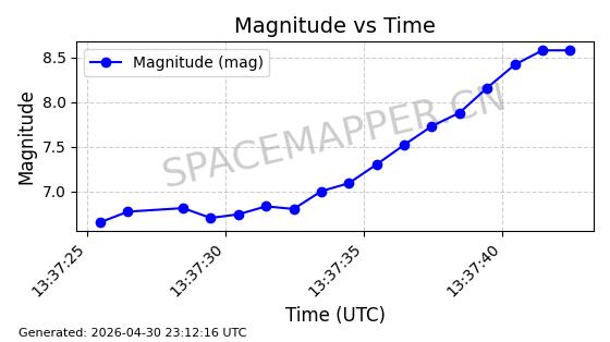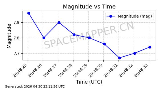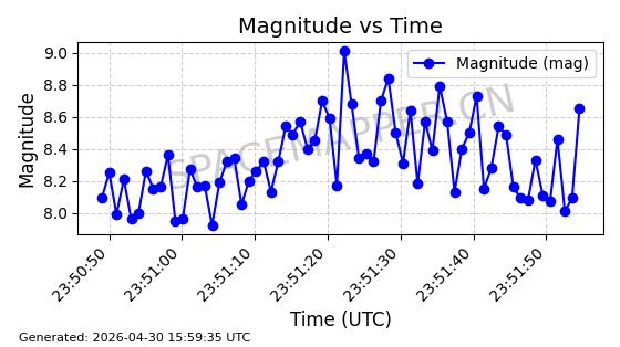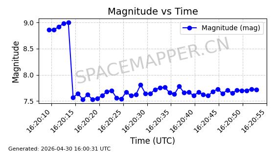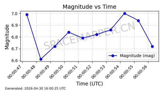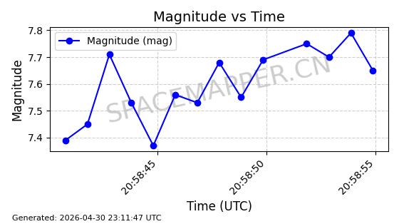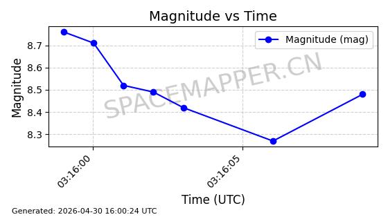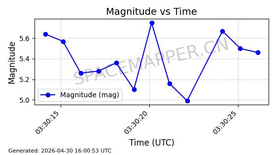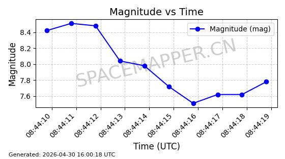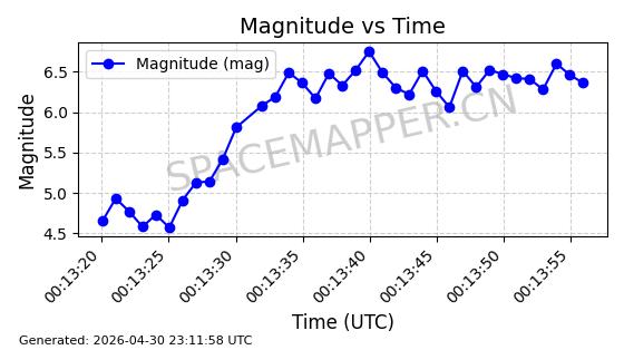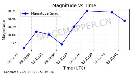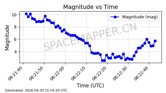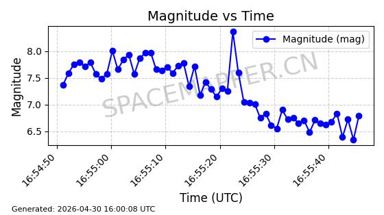 | STARLINK-31372 | 58939 | 58939 | 2024-02-10 同日期轨道 2024-027J 同批次轨道 | 在轨 | 94分钟 | 53.1612 | 474.471 | 475.983 | 0.0001103 | 2026-04-30 00:22:39 | ||