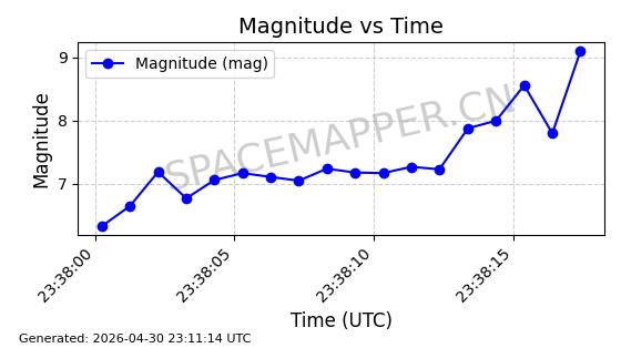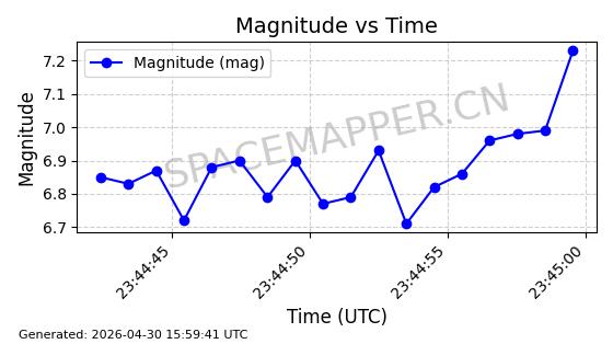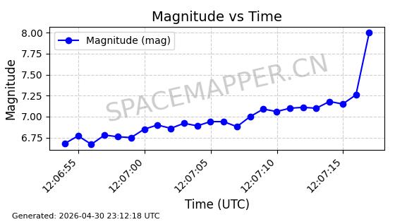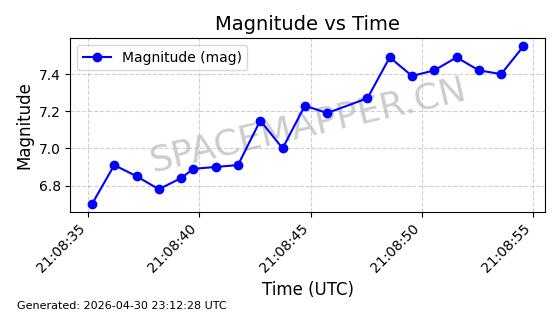 | STARLINK-31382 | 59184 | 59184 | 2024-03-10 同日期轨道 2024-045G 同批次轨道 | 在轨 | 94分钟 | 43.0026 | 482.059 | 484.301 | 0.0001633 | 2026-04-30 03:16:47 | ||