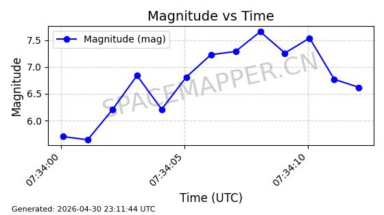 | STARLINK-31412 | 59410 | 59410 | 2024-04-05 同日期轨道 2024-064N 同批次轨道 | 在轨 | 94分钟 | 43.0034 | 482.332 | 483.802 | 0.0001070 | 2026-04-30 01:36:15 | ||